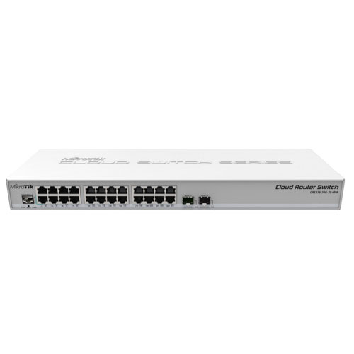 24 cổng Gigabit Ethernet được hỗ trợ bởi SwOS / RouterOS với hai cổng SFP+